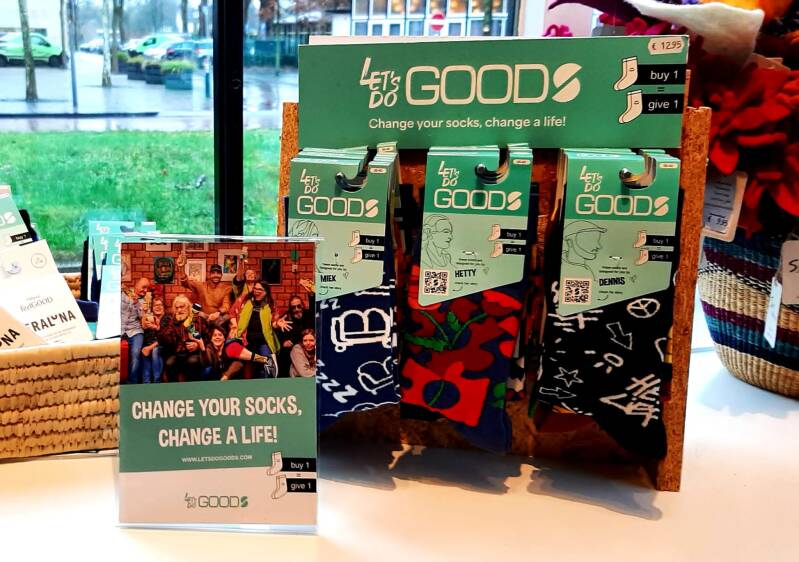 Wanneer jij een paar sokken bij ons koopt gebeurt er iets speciaals. Er wordt dan een paar sokken gemaakt in de sociale sokken fabriek. Dit is een plek waar de beste sokken ter wereld worden gemaakt samen met deelnemers van het Leger des Heils. Sokken gemaakt van geryclede garens, gewoon hier in Nederland. En het mooie is, die worden vervolgens allemaal weggegeven aan de allerarmsten.