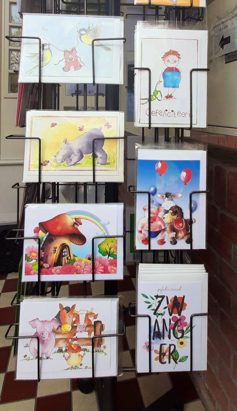 De kaarten zijn gedrukt op biotop-300 papier, dat naast het FSC-label, ook het EU-label heeft. Ze worden lokaal gedrukt. Kijk op haar website: Det-line.nl
